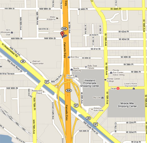 Nuestras Oficinas se encuentran ubicadas junto al Palmetto Expressway entre las salidas de Okeechobee Rd. y la NW 103 St. |